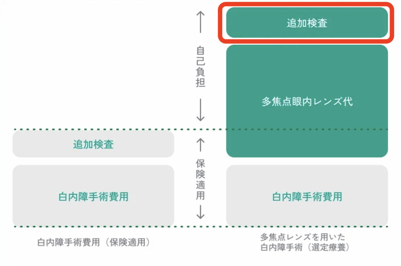 この選定療養は、『白内障手術の保険診療部分は保険適用のまま、多焦点眼内レンズに関する追加費用のみを自己負担する制度』となります。